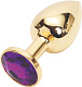 Золотистая анальная пробка с фиолетовым кристаллом размера M. Вес - 86 гр.