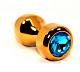 Золотистая анальная пробка с голубым кристаллом - 7,8 см.
