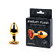 Золотистая анальная пробка с красным стразом-сердечком - 7 см.