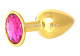 Золотистая анальная пробка с малиновым кристаллом - 7 см.