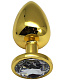 Золотистая анальная пробка с прозрачным кристаллом - 9 см.