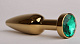 Золотистая анальная пробка с зеленым кристаллом - 11,2 см.