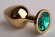 Золотистая анальная пробка с зеленым кристаллом - 8,2 см.