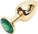Золотистая анальная пробка с зеленым кристаллом размера M. Вес - 86 гр.
