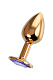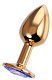 Золотистая анальная втулка с фиолетовым стразом - 7 см.