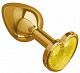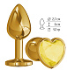 Золотистая анальная втулка с желтым кристаллом-сердечком - 7 см.