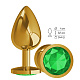 Золотистая большая анальная пробка с зеленым кристаллом - 9,5 см.