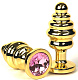 Золотистая ребристая анальная пробка с нежно-розовым кристаллом - 6 см.