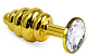 Золотистая ребристая анальная пробка с прозрачным кристаллом - 7,5 см.