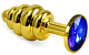 Золотистая ребристая анальная пробка с синим кристаллом - 7,5 см.