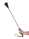 Стек Готика представлен в виде роскошного, изящного изделия цвета темного шоколада. Петлеобразная хлопушка стека изготовлена из натуральной кожи высокого качества, располагается на конце гибкого, но прочного хлыста. Комфортное использование девайса обеспечивает бархатистая рукоять, покрытая велюровой тканью. Ремешок-петля, находящийся на рукояти, позволяет дополнительно фиксировать стек на запястье. Длина рукояти - 17 см.