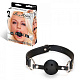 Черный кляп с пластиковым шаром с отверстиями для облегченного дыхания. Кляп застегивается на ремешок из искусственной кожи.