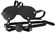Комплект изготовлен из качественного кожзаменителя и украшен хромированными заклёпками. Набор универсальный и неразъемный, его можно надевать как на женщин, так и на мужчин. Размер атрибута регулируется с помощью ремешка. Ширина маски - 9 см.