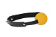 Кляп сделан в виде желтого пластикового шарика на ремешке из кожзаменителя. Ремешок по краям обработан швами и декорирован никелированными заклёпками. По длине регулируется с помощью пряжки.     Максимальный обхват головы - 60 см.