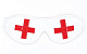 Маска из натуральной кожи на резиночке. Декорирована ярко-красными крестиками. Имеет красный подклад из мягкой перфорированной кожи. Ширина - 7 см.
