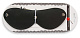 Маска выполнена из искусственной кожи и украшена тремя хромированными заклёпками. На голове аксессуар держится с помощью эластичной резинки, благодаря которой маска подходит большинству размеров головы.    Ширина - 7 см.