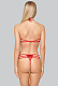 Двухчастный комплект, выполненный из красной, слегка блестящей ткани. Стринги изготовлены из ткани, соединенной тремя эластичными полосками, чудесно облегающими женские бедра и соблазнительно экспонируют животик. Лифчик, застегивающийся сзади, представляет собой соединение полосок из эластичной ткани и завязанного спереди банта. Все вместе выглядит фривольно и кокетливо, одним словом, – это идеальный комплект для сумасшедших любовных утех. В комплекте: лиф, трусики-стринги.