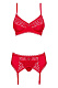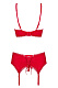 Страстный комплект белья из трех предметов. Бюстгальтер предназначен для полного бюста. Косточки и поролоновая вставка в нижней части великолепно моделируют грудь. Мягкое кружево в верхней части бюста декорировано узором. Между чашечек украшение в форме сердечка со стразом и атласный бантик. Три ряда застежек крючков сзади обеспечивают дополнительный комфорт и прекрасное прилегание. Бретели регулируются по длине. Широкий пояс выполнен из гладкой эластичной ткани и узорчатого кружева. Сзади дополнен игривой атласной шнуровкой. Спереди также украшен подвеской и бантиком. Четыре пажа регулируются по длине. В комплекте: бюстгальтер, трусики-стринги, пояс для чулок.