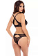Эротический комплект нижнего белья - бюстгальтер с мягкими полуоткрытыми чашками на каркасах и трусы-бикини с фантазийным вырезом на задней панели. В комплекте: бюстгальтер, трусики.