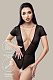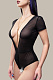 Эротическое боди с короткими рукавами «Эба́ндэн» (англ. Abandon – «Раскрепощенность») из тонкой прозрачной эластичной сетки облегает фигуру, ощущается невесомым, не сковывает движений, но визуально меняет силуэт. Шелковистая поверхность материала дарит приятные ощущения при прикосновении. Современные элементы дизайна боди тешат женское самолюбие. Аккуратные швы и вытачки акцентируют внимание на плавных изгибах тела и создают силуэтную посадку. Глубокие вырезы в зоне декольте и на спинке позволяют легко освободить грудь. Лаконичный крой и эротический доступ дополняют чувственный образ.