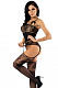 Необычный и сексуальный кэтсьюит из черной ткани понравится любой девушке. Материал украшен ажурным цветочным рисунком. Низ сделан в виде имитации чулок с пажами. Наряд хорошо сочетается с высокими каблуками и другими аксессуарами. Прозрачная ткань на груди смотрится эротично и пикантно. Необычные тонкие бретели с бантиками привлекают внимание к области декольте, открывают руки и плечи. Освежите отношения с помощью сексуального белья и смелого перевоплощения. Обыграйте образ, и ваш партнер обязательно захочет повторения страстного вечера!