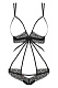 Страстное боди с открытой грудью и промежностью для горячей ночи. Изготовлено из кружева с цветочным орнаментом и тонких эластичных тесемок. Двойные бретели регулируются по длине, сзади застежка на крючок. Декоративные украшения с маленькими кристаллами украшают боди на спинке.