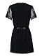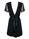 Небольшая длина, подчеркивающая красоту ног, строгий черный цвет, отсутствие воротничка, длинный пояс из атласной ленточки, кружевная оторочка, рукавчики из ажурного полотна – ням-ням! Трусики-стринги в комплекте. В комплекте: пеньюар, трусики-стринги.