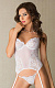 Оборочки на лифе и трусиках-стринг добавят образу озорства. В комплекте: бюстье, трусики-стринги.
