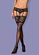 Тонкие чулки для ношения с поясом. Украшены широкой кружевной коронкой с цветочным мотивом.