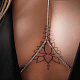 Оригинальная цепочка на грудь выполнена из тонкого металла в виде тоненьких колечек и соединена таким образом, чтобы подчеркнуть зону декольте.