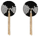 Круглые самоклеящиеся пэстисы с пайетками. Украшены кисточками из золотистых цепочек.
