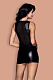 Облегающее wetlook-платье Jilian подчеркнет естественные изгибы тела, а асимметричная ставка прозрачной сетки пикантно продемонстрирует декольте и спину. Наряд придется по вкусу любительницам современных смелых образов. В комплекте: платье и трусики-стринги.