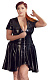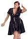 Виниловое платье со слегка расклешенной юбкой. Искусно асимметричный крой: спереди короче, чем сзади. Металлическая молния на глубоком вырезе отлично подчеркивает декольте.