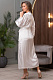 Длинный халат выполнен из смесового шелкового полотна. Низ рукавов декорирован тонким кружевом, вырезанным по форме кружева кромка ткани придает удивительную воздушность модели. Дизайн коллекции - студия Angelo Bellini (Milano).