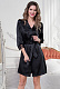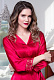 Короткий халат на пуговицах с рукавом 3/4, выполнен из однотонного искусственного шелка. Низ рукавов украшен ажурной вышивкой на сетке. В боковых швах расположены карманы. Линию талии можно подчеркнуть за счет пояса, который идет в комплекте.
