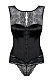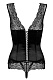 Корсаж, больше похожий на топ, имеет шнуровку во всю длину спинки и кружевной верх, формирующий роскошную зону декольте. Пуговки на корсетной части добавляют образу игривости. В комплекте: корсаж, трусики-стринги.