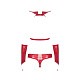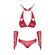 Костюм для ролевых игр Vampines из ткани с мерцанием. Женский игровой костюм составляют 4 предмета. Бюстгальтер с мягкими чашками. Тонкие бретели завязываются на шее сзади, объем регулируется. Трусики-стринги с декоративной шнуровкой. Высокий воротник с застежкой и длинные митенки с петлей на средний палец. В комплекте: бюстгальтер, трусики-стринги, воротник, митенки.