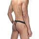Гладкие блестящие синие стринги на широкой черной эластичной резинке, с низкой посадкой.