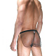 Трусы-шорты для мужчин, из тонкой, полупрозрачной сетевой мягкой ткани. Спереди вставка из гладкого блестящего непрозрачного лакового материала.