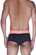 Мужские хипсы из эластичной черной ткани, со строчками и широким поясом персикового цвета.