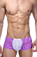 Кружевные трусы-хипсы для мужчин, фиолетового цвета. Спереди вставка из белой, полупрозрачной очень мелкой сетчатой ткани.