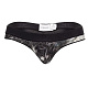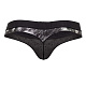 Мужские стринги чёрного цвета с блестящим серебристым напылением. Передняя панель однослойная, без подкладки. Сзади тоненькая ниточка.