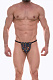 Темно-серые мужские трусы-стринги с разноцветным принтом