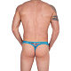 Трусы-тонги с разноцветным принтом и голубой окантовкой