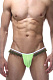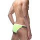 Танга для мужчин сочного ярко-зеленого цвета. Трусы на тонкой белой резинке, по бокам которой пришита темно-зеленая бахрома.