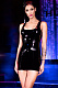 Сексуальное чёрное мини-платье на широких бретелях, плотно облегает фигуру. Сшито из эластичной ткани, имитирующей глянцевую кожу. Комплектуется стрингами. В комплекте: платье, трусики-стринги.