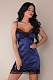 Элегантная сорочка на тонких бретелях, темно-синего цвета в мелкий горошек, верх и низ сорочки обрамлен кружевом, в комплект входят трусики. В комплекте: сорочка, трусики-стринги.