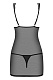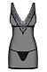 Полупрозрачная короткая сорочка с V-образным вырезом сорочки. Декорирована кружевом, бретели регулируются. В комплекте: сорочка и трусики-стринги.
