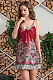 Классическая короткая сорочка на тонких бретелях выполнена из смесового шелка с купонным принтом расположенным по низу сорочки. Орнамент украшает вырез и низ сорочки. Декор - атласный бантик с подвеской.