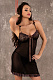 Сорочка средней длины, выполненная из тонкого тюля. Мягкие чашечки изготовлены из кружева с цветочным мотивом и дополнены атласным бантиком по центру. Тонкие регулируемые бретели также декорированы бантиками. Подол расшит кружевной оборкой. В комплекте: сорочка и трусики-стринги.